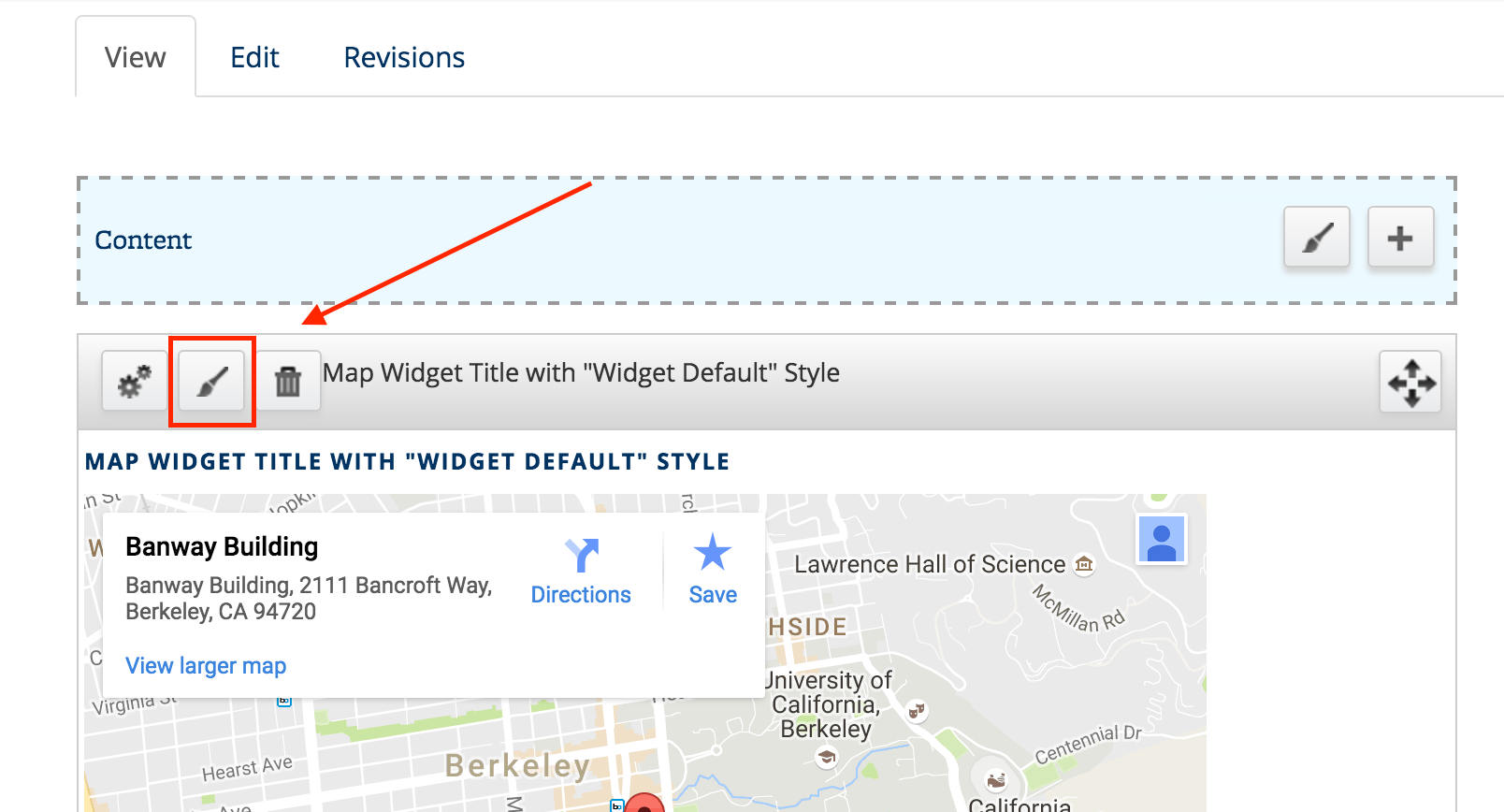 On pages where you are using layouts and widgets (such as the home page, or a Landing page, or a Content page where you've added something like an optional sidebar), you can edit each widget individually, create new widgets, and drag and drop widgets into different regions as desired.