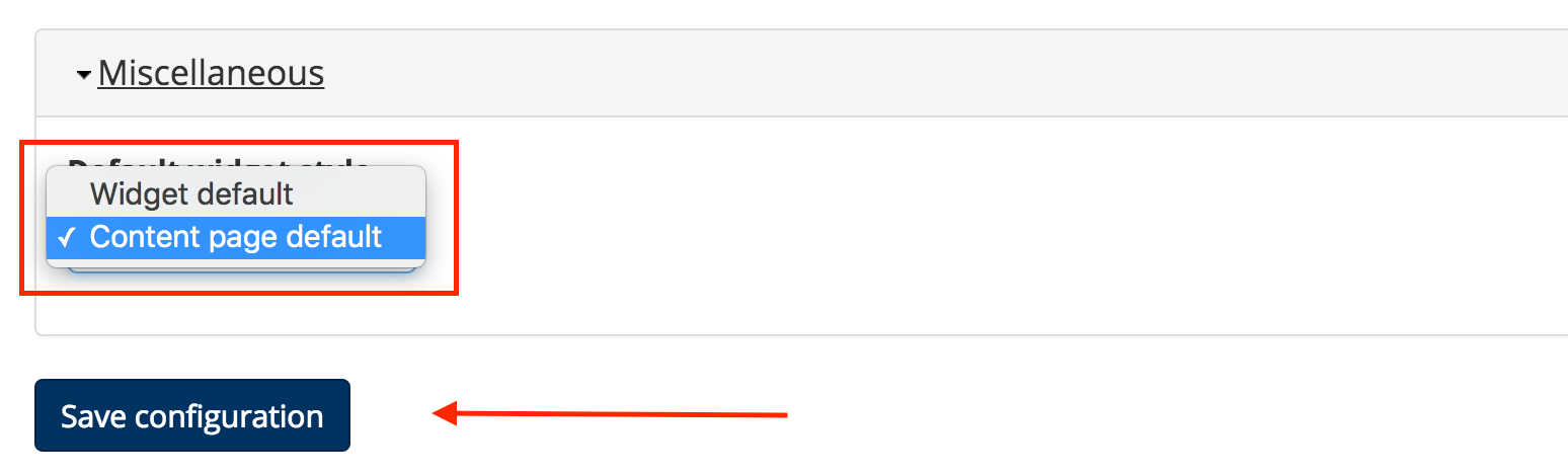 Navigate to to the bottom of the page and expand the "Miscellaneous" section. From there, you can select your default style. Click "Save Configuration" when you're done: